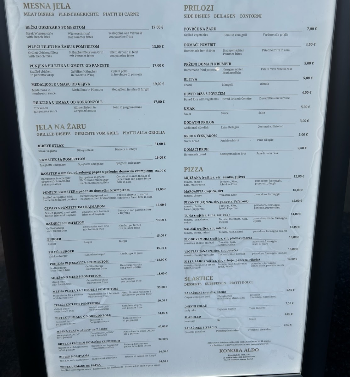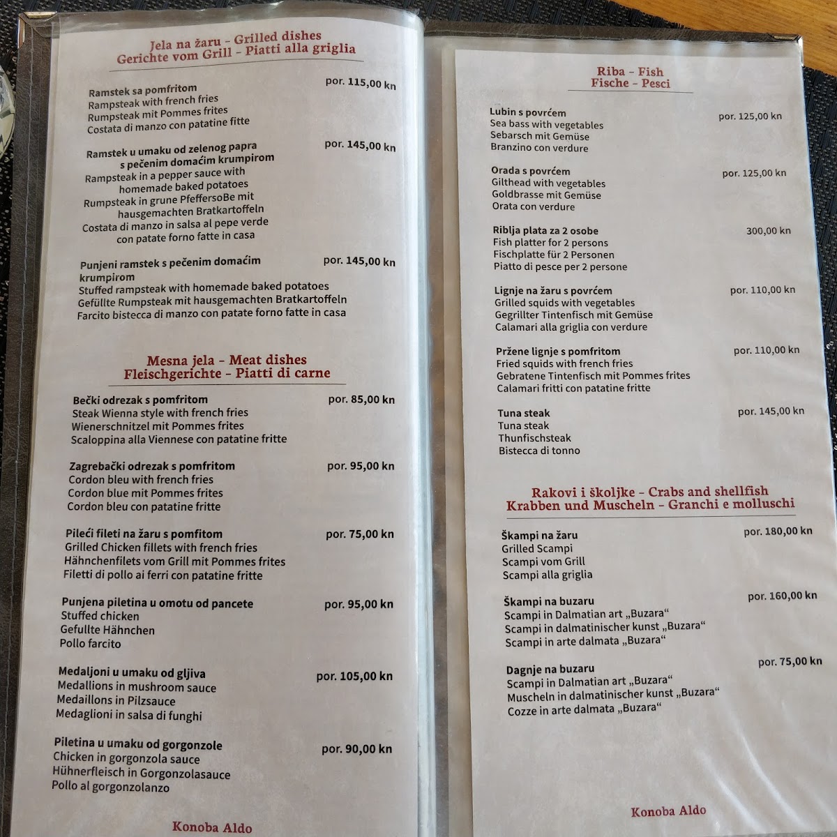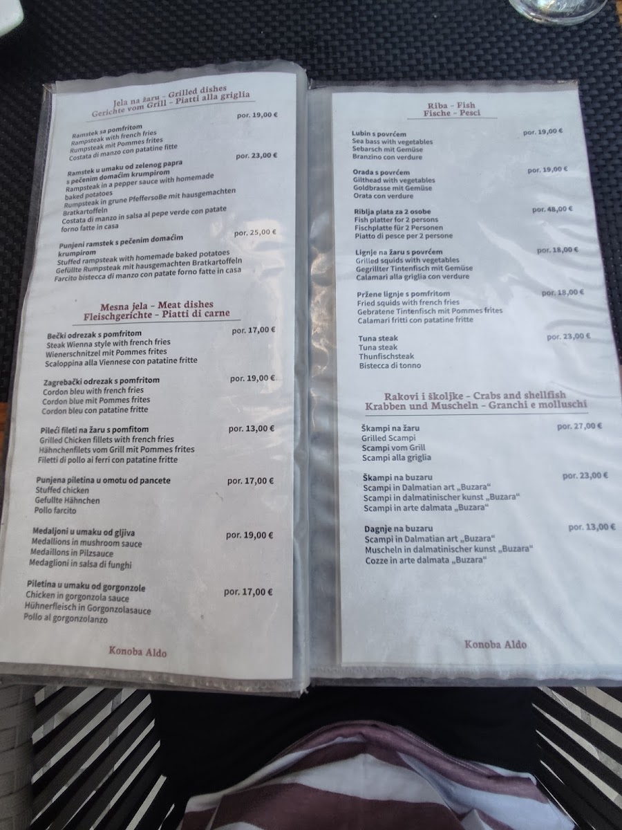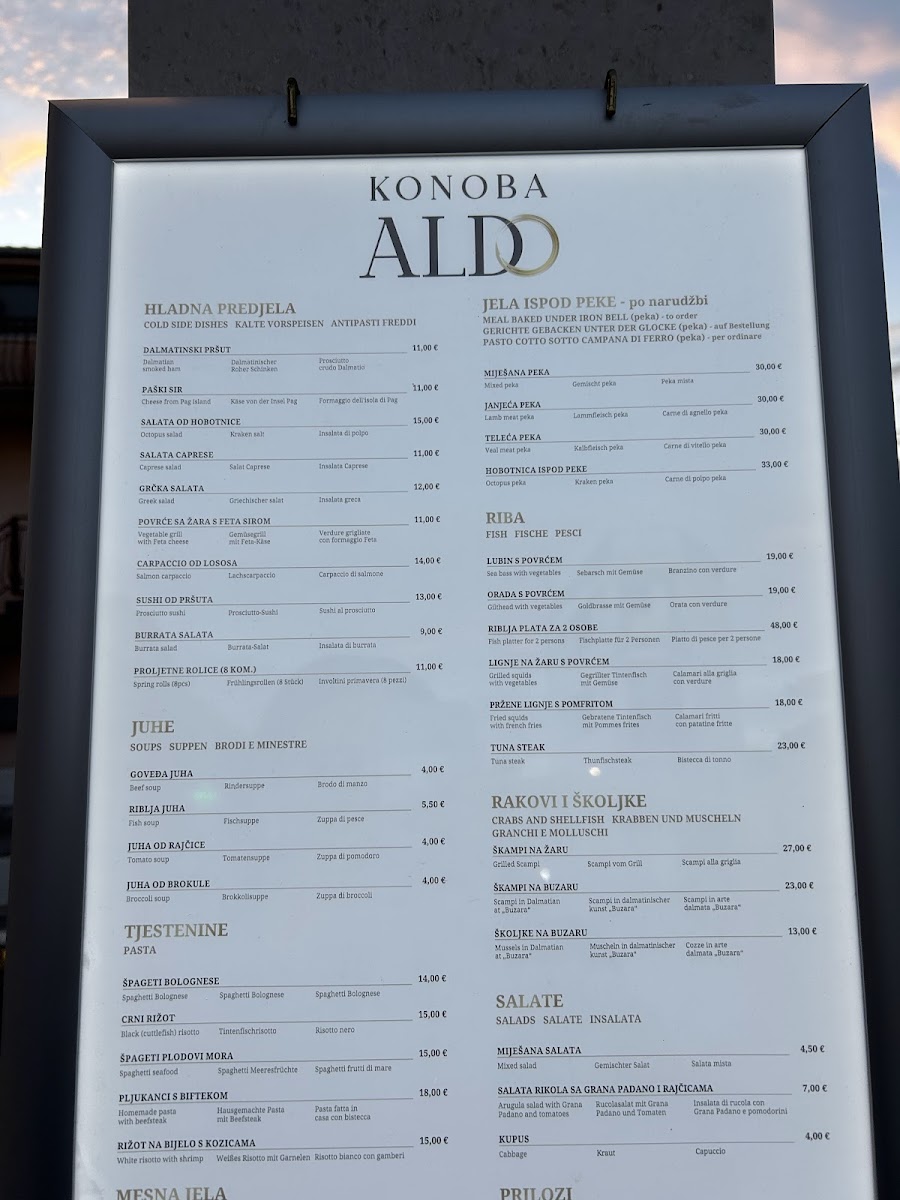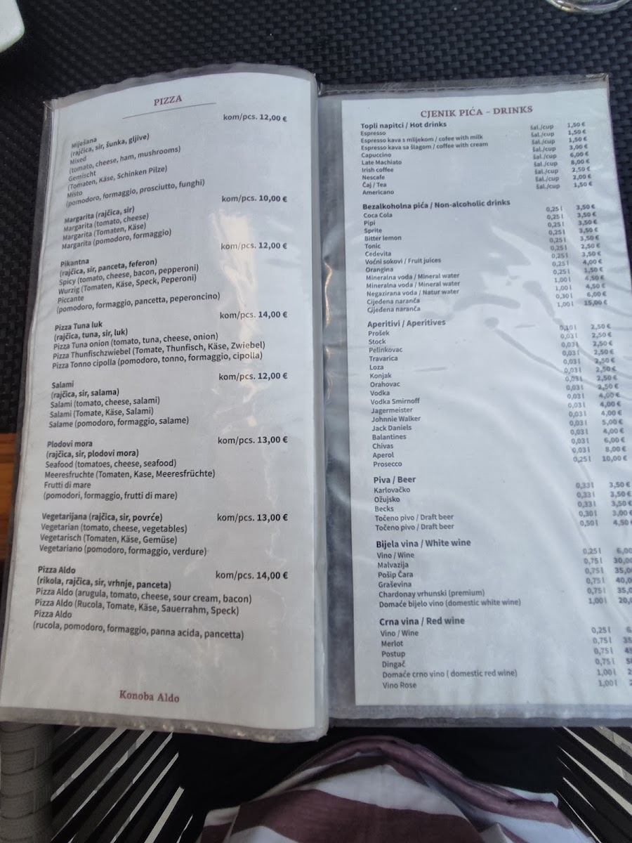 Welcome to Konoba Pizzeria Aldo, a culinary gem nestled in Okrug Gornji, Croatia. Our menu is a delightful blend of Mediterranean flavors, showcasing a variety of dishes to satisfy every palate. Our pizzas are a local favorite, crafted with fresh ingredients that bring authentic Italian charm to life. Guests rave about the savory meat platters—ideal for sharing—and the exquisite pulpo prepared “ispod peke”, a must-try dish that requires pre-ordering for its mouthwatering depth of flavor.